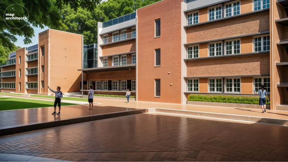 Campus architecture today faces the vital challenge of creating dynamic environments that are simultaneously innovative and deeply rooted in place. The traditional campus often evokes a sense of permanence, history, and academic gravitas through elements like quadrangles, local masonry, and formal symmetry. The modern outlook, conversely, champions flexibility, sustainability, and transparency, prioritising advanced materials, open-plan interiors, and technology integration. Successful fusion of these two approaches combines global architectural innovation while grounding the design in local cultural, climatic, and historical contexts.