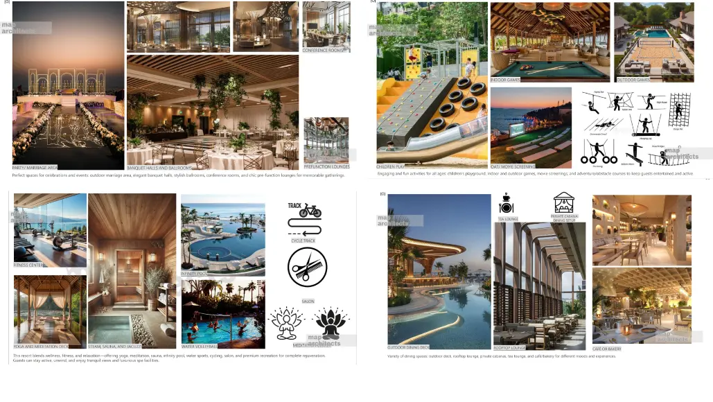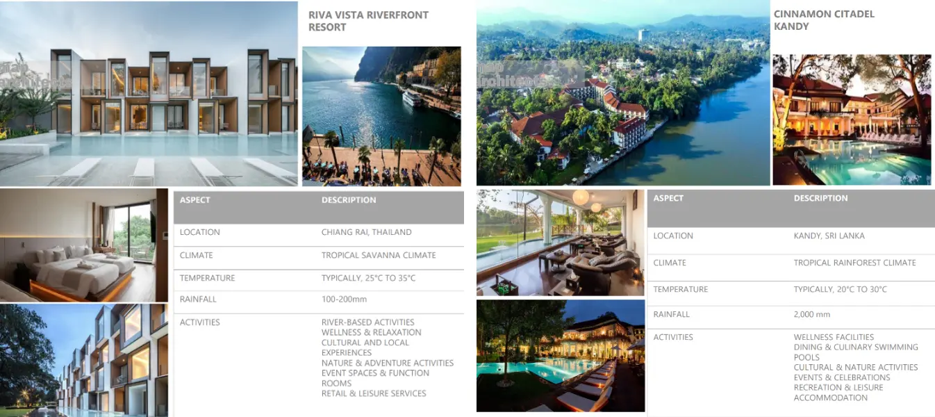MAP Architects compared existing projects to provide a design context to the proposed concept design, strengthening the concept design process in architecture. This included a descriptive comparison of locations, materials used, and number of storeys, and the optimization ratio of visitors to service areas, to understand operational efficiency based on proven global models in Hospitality Architecture Design.